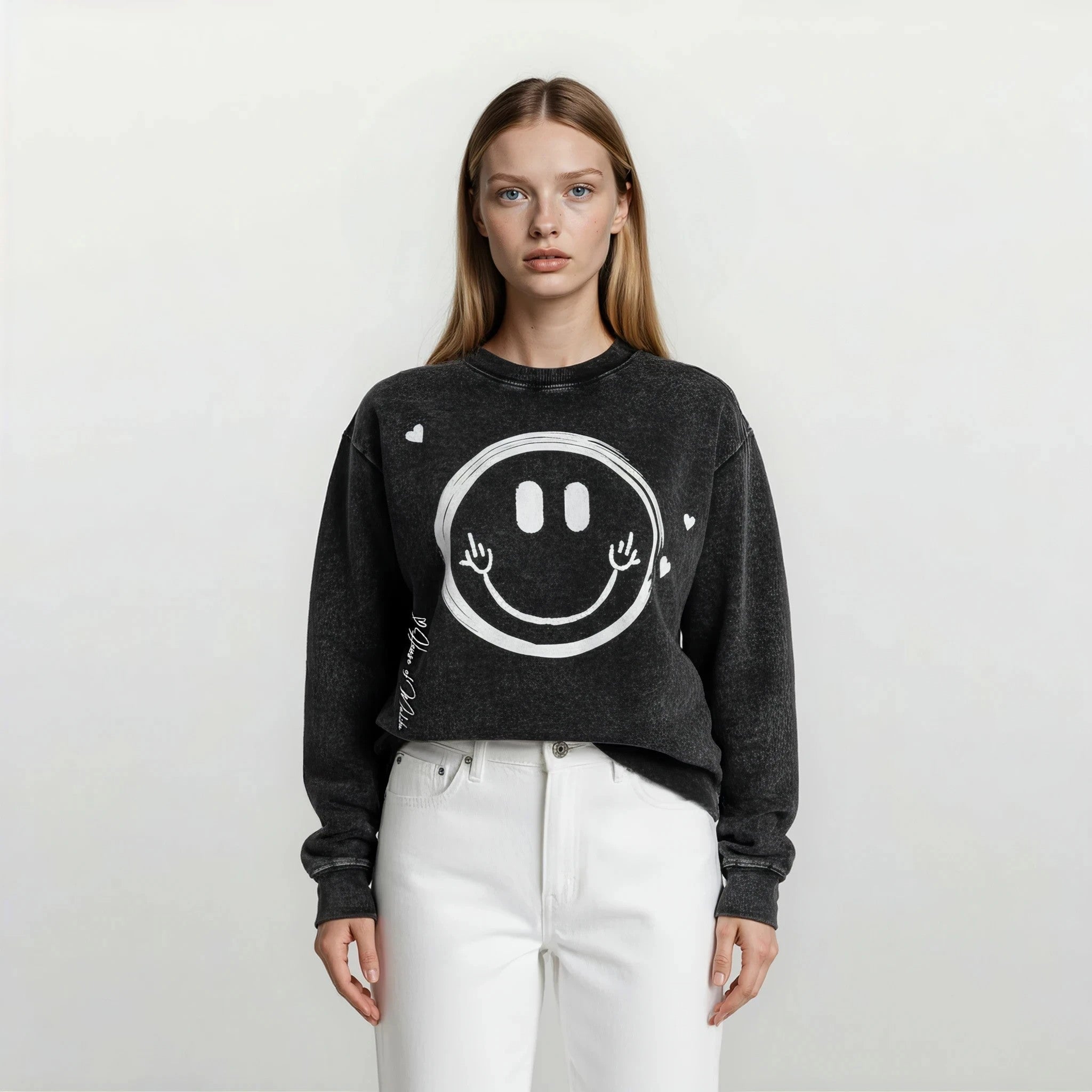 Mama always said smiley face boyfriend sweatshirt β onyx wash
