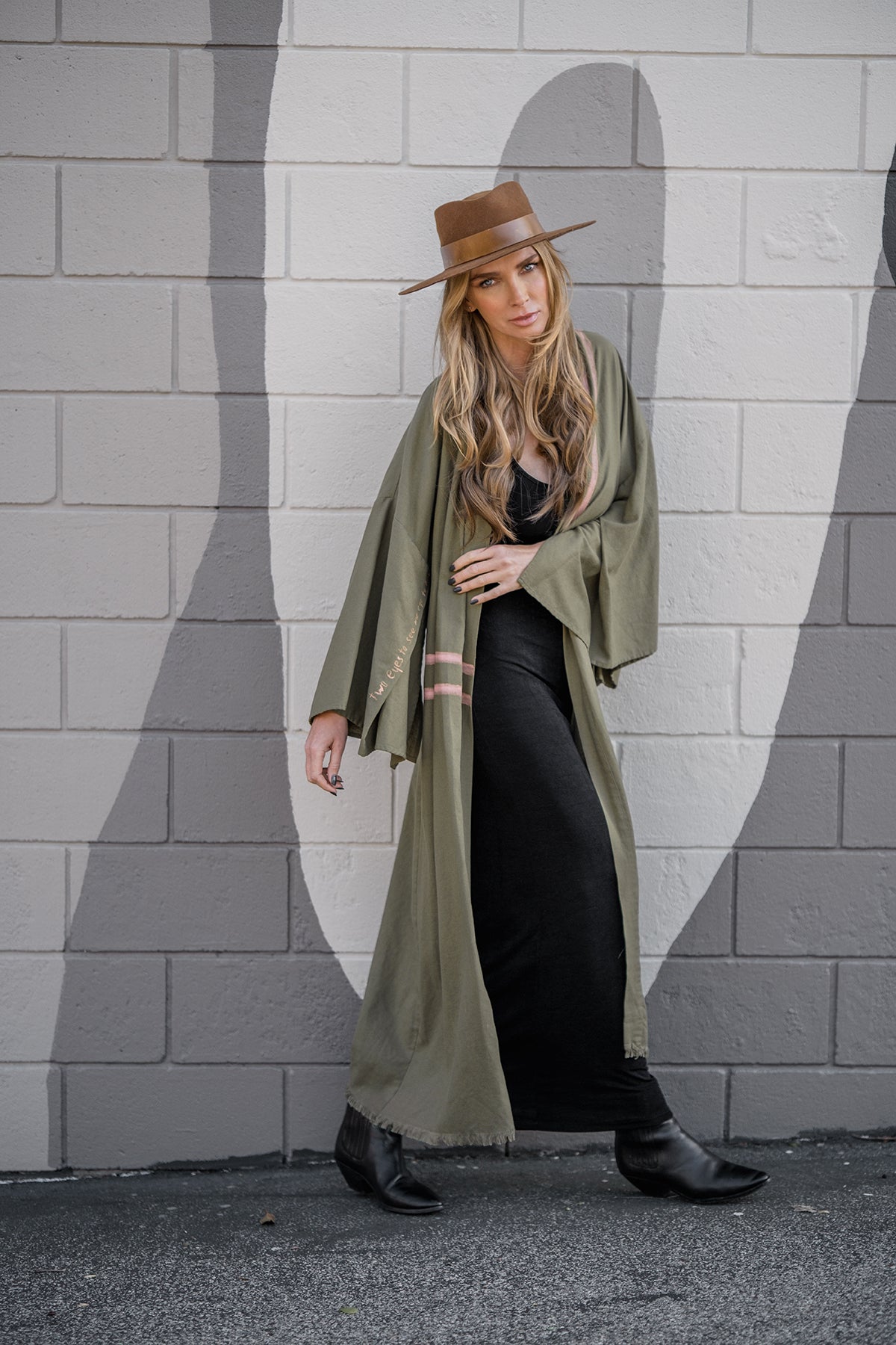 TAKE ME AS I AM Hand-Painted Linen Kimono⎪Camel Black