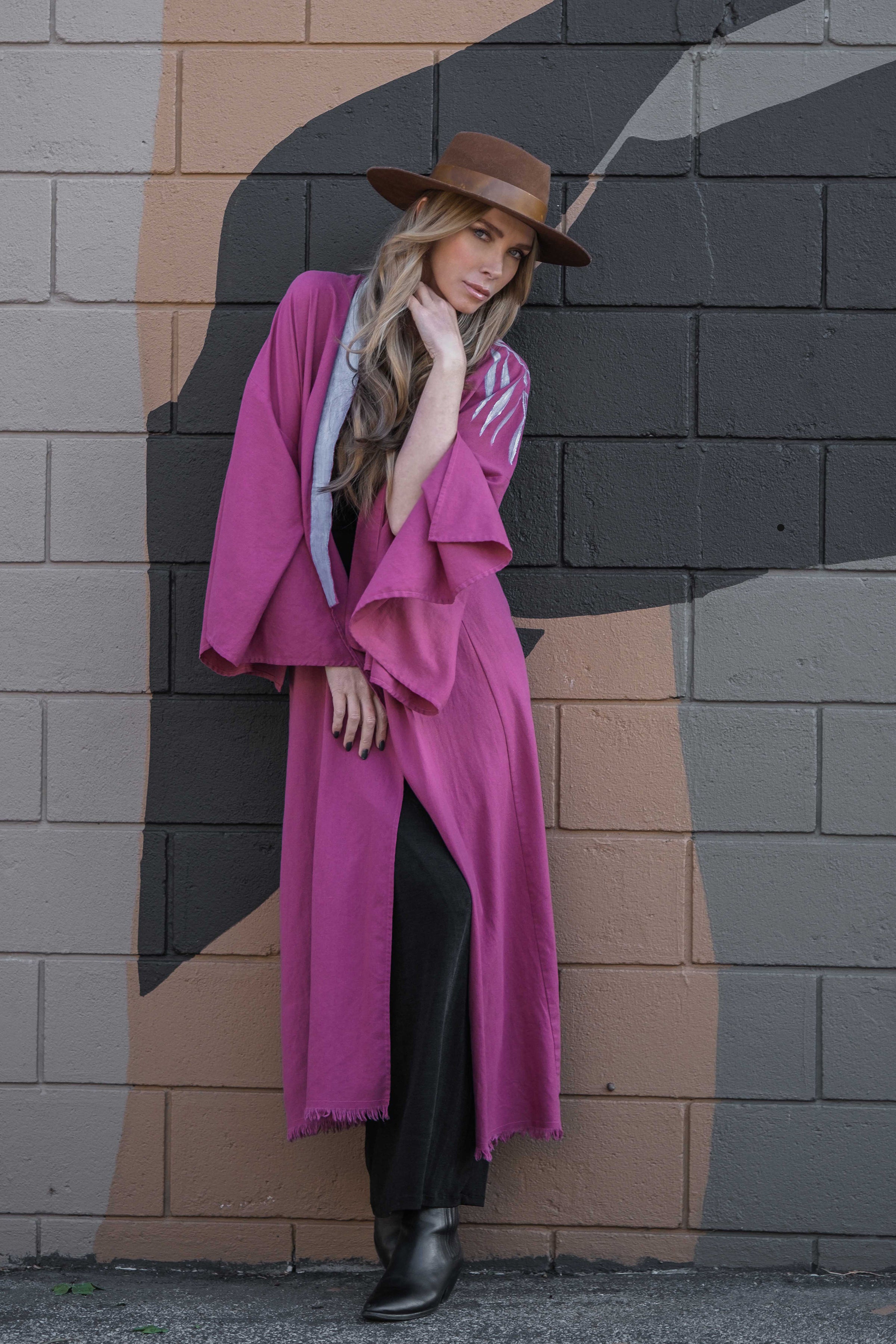 TAKE ME AS I AM Hand-Painted Linen Kimono⎪Raspberry Winkle